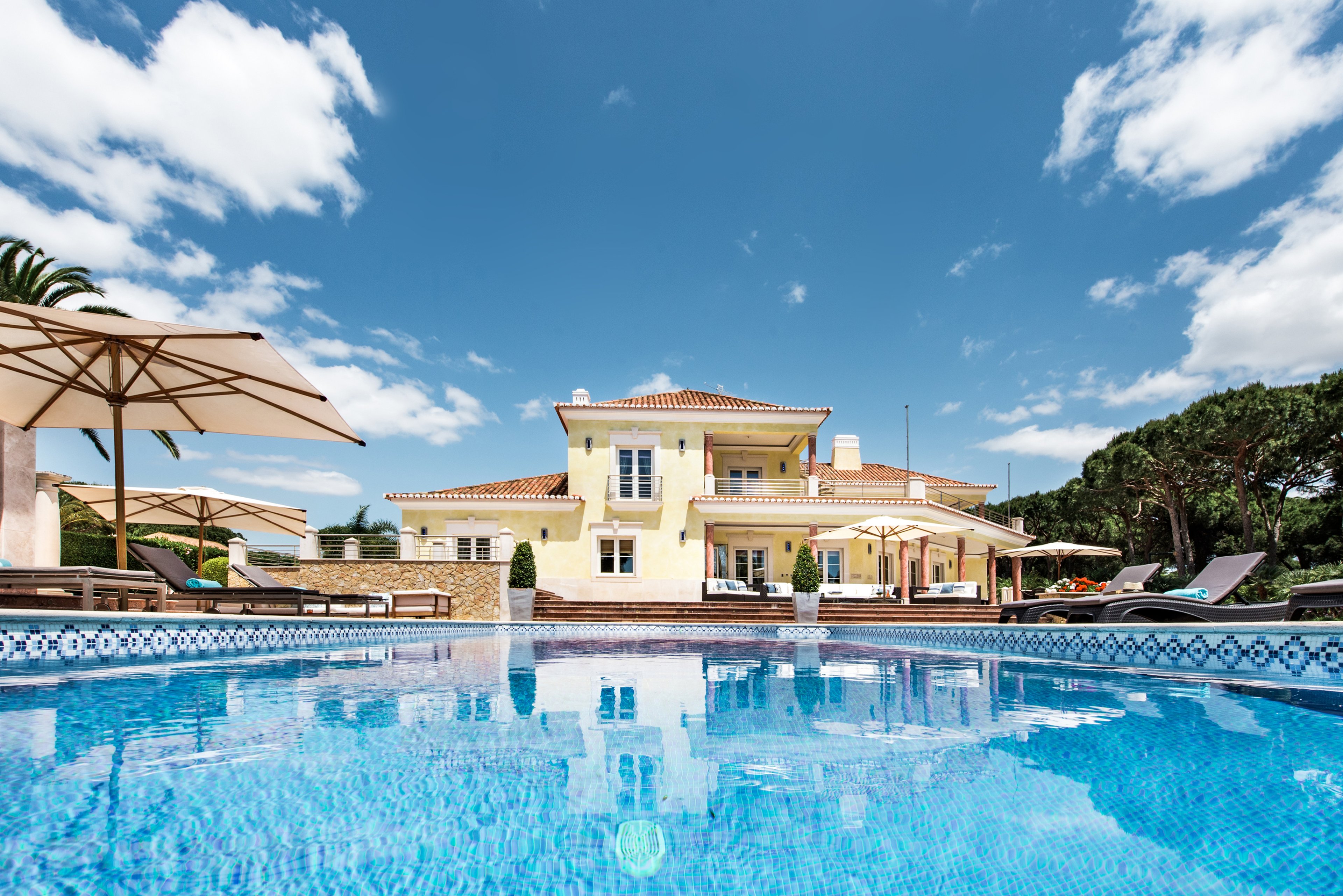 Located in the highly sought-after residential area of Quinta do Lago right next to the San Lorenzo golf course, this property speaks of luxury, sophistication, and glamour. The villa accommodates 14 guests in 7 individually appointed ensuite bedrooms and features a huge games room with a billiard table, a small private gym with a steam room, and a state-of-the-art home cinema. The outdoors are equally grand and equipped for living in style with a long swimming pool, a Jacuzzi tub, a summer kitchen, and multiple terraces to suit the guests' requirements throughout the day. Marble floors, precious chandeliers, bespoke furniture, and pieces of art contribute to the charm of this impressive villa situated just a short drive from the sandy beach and from Quinta do Lago's amenities.